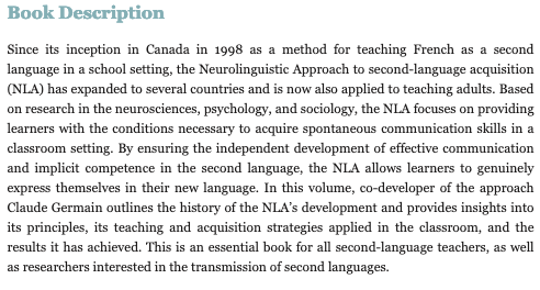 The Neurolinguistic Approach (NLA) for Learning and Teaching Foreign Languages: Theory and Practice By Claude Germain PhD